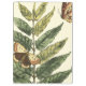 As borboletas fluem pelo ar, pousando em folhas nesta cena botânica por Megan Meagher. Um quadro preto contém a ação. Coloque esta pintura pacífica na sua parede hoje!
