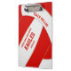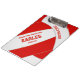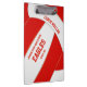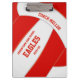 Esta equipe de vôlei colore a prancheta de um treinador de vôlei para meninas ou meninos apresenta um vôlei vermelho e branco de tamanho abstrato no qual você pode personalizar o nome do treinador mais o nome da escola e mascote e ano/estação escolar - por katz_d_zynes
