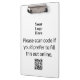Uma imagem de exibição está no topo. Você pode substituí-lo pelo logotipo da sua empresa. O texto de exibição está embaixo da imagem. Você pode editar este texto preto, se necessário. (Mostrado: digitalize o código se preferir preenchê-lo on-line.) Um código QR está na parte inferior. (Lembre-se de digitar o URL do seu site para que o código QR funcione corretamente.)
