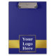 Esta área de transferência azul escura tem uma imagem de exibição próxima ao topo na frente. Você pode substituir a imagem pelo logotipo de sua empresa. Os detalhes falsos do ouro NÃO são feitos de folha.