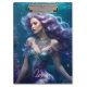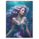 Uma bela sereia com cabelo roxo cascata no oceano. Personalize com um nome.