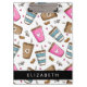 Um padrão bonito, divertido e adorável com xícaras de café, grãos de café e corações. Presente moderno e moderno, perfeito para o amante do café em sua vida. Personalize adicionando o seu nome, apelido, monograma ou iniciais.