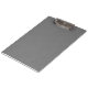 A textured gray fabric surface with a subtle crisscross pattern, conveying a soft and neutral tone. The weave suggests a linen or cotton material.
