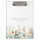 Este design apresenta uma borda de flores silvestres elegantes em aquarela e folhagens em tons de verde, azul-turquesa, laranja e amarelo. Personalize com seu nome e informações comerciais.