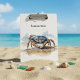 pintura aquarela de um caranguejo azul e laranja andando na praia