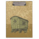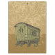 Um desenho a lápis digitalmente editado e colorido de um vagão de caravana cigano