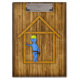 Para algum trabalhador manual, trabalhador da construção, ou carpinteiro. Trabalhador da construção ilustrado dos desenhos animados com a correia do capacete de segurança e da ferramenta dentro do quadro para uma casa.