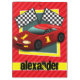Carro de corrida de crianças legal e colorido, vermelho, amarelo, bandeira marcada, design de corrida automática no padrão Scarlet Red Stripes. Presente perfeito para bebês, crianças, crianças, adolescentes ou adultos! Personalizado o modelo de design adicionando um nome de criança ou texto personalizado. Visite nossa loja, Festa de aniversário House, para mais produtos personalizáveis para excelentes!