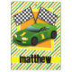 Carro de corrida de crianças legal e colorido, verde, bandeira marcada, design de corrida automática em verde, amarelo, laranja, padrão de listras brancas. Presente perfeito para bebês, crianças, crianças, adolescentes ou adultos! Personalizado o modelo de design adicionando um nome de criança ou texto personalizado. Visite nossa loja, Festa de aniversário House, para mais produtos de meninas personalizáveis para excelentes!