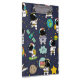 Um gráfico do astronauta clipart, Outer Space: astronauta segurando o balão como um planeta, um foguete, estrelas, ícone de OVNI, ícone de satélite espacial, planeta Saturno, nave espacial e outros. Sobre fundo azul de Oxford (azul marinho).