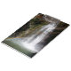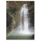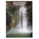Uma prancheta de uma foto de uma cachoeira com um belo arco-íris de arco no fundo.