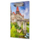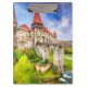 Lindo panorama do Castelo Corvin com ponte de madeira, Hunedoara, Transilvânia, Romênia, Europa.
