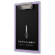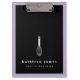 Uma prancheta moderna em um design bonito para sua empresa de restauração, café, padaria ou similar. Em um fundo preto e enquadrado por uma lavanda de borda roxa, um balão giro sussurra em branco com um coração na alça. Adicione seu nome ou nome comercial em letras brancas em negrito acima do seu slogan.