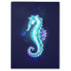 Espumantes, cristais, gelados, poligonais, cavalo marinho sobre fundo azul escuro.
