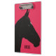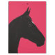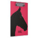 Essa área de transferência minimalista oferece uma ilustração de cavalo preto e um nome personalizável. O cavalo é desenhado sobre um fundo fuchsia, e este é um presente excelente para senhoras que possuem ou amam cavalos.