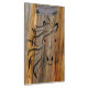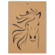 Placa de madeira colorida numa diagonal sobreposta com um contorno da cabeça do cavalo.
