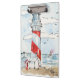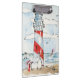 Um impressão de cor da água de um farol e de um veleiro na água.