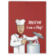 Cabeça de chef com chapéu, corcunda vermelha e texto personalizado.