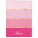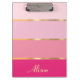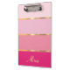 Mantenha-se organizado em estilo com esta prancheta chic, adornada com uma série de listras cor-de-rosa que vão de pastéis macios a matizes negros. Linhas Douradas separam as cores, acrescentando um toque de luxo à design. Personalize-o com seu nome, monograma ou qualquer texto que você quiser, ou mantenha-o simples removendo o texto de amostra. Esta área de transferência combina moda e funcionalidade, fazer-a um acessório perfeito para o seu escritório ou um presente pensativo.