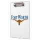 Esta design apresenta a bandeira de Fort Worth, que é uma das maiores cidades do estado do Texas nos Estados Unidos. É a sede do Condado de Tarrant. A cidade de Fort Worth foi fundada em 1849 como um posto avançado do exército numa margem do Rio Trinity. Fort Worth tem sido historicamente um centro do comércio de gado Texas Longhorn. Embora considerado por alguns como uma cidade de satélite devido à sua proximidade com Dallas, que tem a maioria da população desde os anos 50, Fort Worth tornou-se uma das cidades com maior crescimento nos Estados Unidos nos últimos anos, particularmente no século 21.
