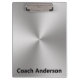 This clipboard has the appearance of silver brushed metal look. You can customize the clipboard with a coach's name or other text. The text is black.