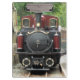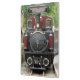 Gales, a terra dos pequenos comboios a vapor. Um trem vermelho e carruagem verde de passageiros, bem preservados.