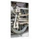 Um design fotográfico da roda de um trem a vapor.