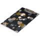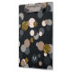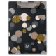Um padrão de pontos de confete aleatórios em um pêssego pastel, marrom-mapa e paleta de cinzas, com brilho dourado sobre fundo escuro. Personalize com uma inicial.