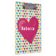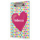 Estes corações felizes são bonitos nesta prancheta. Decorado com corações cor-de-rosa, azuis, verdes, castanhos e amarelos, há um grande coração rosa no meio. Você pode personalizar o seu nome em letras brancas em negrito. Compre o seu hoje! Trabalho de arte criado por: Prettygrafik design (https://www.etsy.com/shop/Prettygrafikdesign)