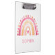 Arco-íris de coração bonito, personalizado com o nome do receptor em tipografia simples. O estilo de aquarela adiciona um aspecto texturizado a este design boho. Apresentando pinks brilhantes e pastéis e amarelo vibrante, é o presente perfeito para as crianças ou os jovens de coração.
