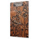 Placa de recorte marrom russa com um fundo de couro falsa.