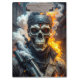 Libere o poder desta impressionante obra de arte, apresentando um crânio formidável com olhos brilhantes, pronto para a batalha contra as forças da perdição. Vestida com couro preto elegante e armada com uma arma de fogo, a figura exala intensidade e resiliência. Chamas ardentes, fumaça e cinzas giram ao fundo dramático, amplificando o sentido de ação e perigo. Perfeita para colecionadores que apreciam visuais ousados e dinâmicos e temas sombrios e atmosféricos, esta peça certamente fará uma declaração poderosa em qualquer espaço.