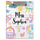 Brighten up any classroom or office with this custom teacher name clipboard featuring adorable, hand-drawn school doodles! With fun icons like a globe, backpack, scissors, ABC board, and rainbow — this clipboard is both practical and full of personality. Personalize it with your name (like “Miss Sophia”) to make it truly yours.