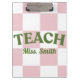 Pranchetas Customizable Pink Checkered Teacher Clipboard