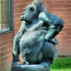 Um gorila fofo olhando pela janela.