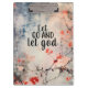 A prancheta cristã retrata um belo coral, uma nuvem e um design azul abstrato de arte floral. Ele apresenta uma poderosa citação inspiradora para deixar Deus direcionar nossos caminhos, "Deixe Deus e Deixe Deus".