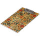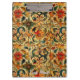 O produto apresenta um padrão de ornamentado uniforme com um estético rico e antigo. Ele apresenta um design de alto detalhe de elementos florais e botânicos girando em tons quentes e úmidos de ouro, laranja, vermelho e verde. A composição inclui flores, folhas e cercas intricadamente fundidas, criando um sentido de profundidade e movimento.