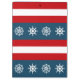 Design com temas náuticos com faixas vermelhas e brancas, roda de vela e decoração de bússolas
