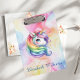 Adicione um toque de magia à nossa prancheta Design do Rainbow Unicorn, personalizável com o seu nome. Perfeito para dobras ou uso pessoal, esta área vibrante e balbuciosa faz da organização do dia a dia diversão e na moda.