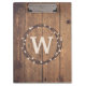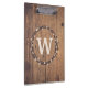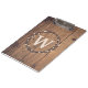 Design de monograma para Natal, com coroa e decoração de neve sobre fundo de madeira rústica