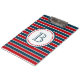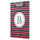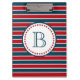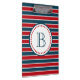 Design de temas náuticos com decoração em forma de monograma, em forma redonda, com estrelas sobre fundo listrado a azul, vermelho e branco