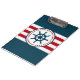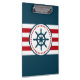 Design náutico com decoração das rodas de vela em forma redonda com estrelas sobre fundo listrado vermelho, azul e branco