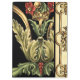 Uma pintura ornamental com design floral atrativo, fechada por bordas pretas. As cores verde e vermelha saltam dos obrigados impressão para o fundo preto. Que maravilha seria isto na sua parede? Compre e descubra!