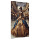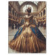 Em uma vintage grande hall ou talvez uma estação de trem vintage, ligeiramente fora de lugar, esta vitoriana Dourada Lady brilha em azul e ouro com engrenagens de relógio tecidas em seu elegante vestido de fantasia nesta adição a qualquer escritório doméstico.
