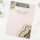 Adicione um toque de luxo aos seus materiais de escritório com esta prancheta de ágata glitter dourado champanhe e marrom. Ideal para profissionais de beleza, escritórios corporativos e espaços de trabalho criativos, esta prancheta personalizada combina funcionalidade com um design inspirado em geodos. Perfeito para quem deseja materiais de negócios práticos que também reflitam seu estilo único.