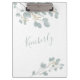 Um moderno design de aquarela de eucalipto com folhas verdes claras de sábio com sotaques dourados. Personalize facilmente o nome com apenas alguns cliques.