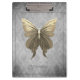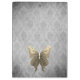 Junte notas e lembretes em uma superfície segura com uma área de transferência personalizada borboleta esculpida. A design de área de transferência apresenta uma borboleta vibrante com joias contra uma cor damasco elegante de cinza. Itens de presentes adicionais disponíveis com este design, bem como uma variedade de cores.
