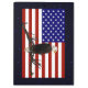 Uma águia careca varreu o céu de sua perca em um galho de árvore; sobreposto a uma bandeira dos Estados Unidos. Tudo num fundo estrelado.
