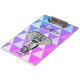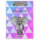 Área de transferência de elefantes geométricos e tribais coloridos e de tendências com letra monográfica. Cores de roxo, rosa e azul fluem ao redor do design de elefante preto e branco!