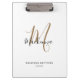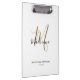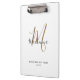 Área de Transferência de Nome de Script Girly do Monograma Dourado Preto Elegante Moderno. Personalize este design de prancheta branca monograma com seu nome e monograma inicial em uma tipografia de tendências e de guiões giros. Presente perfeito para ela.
